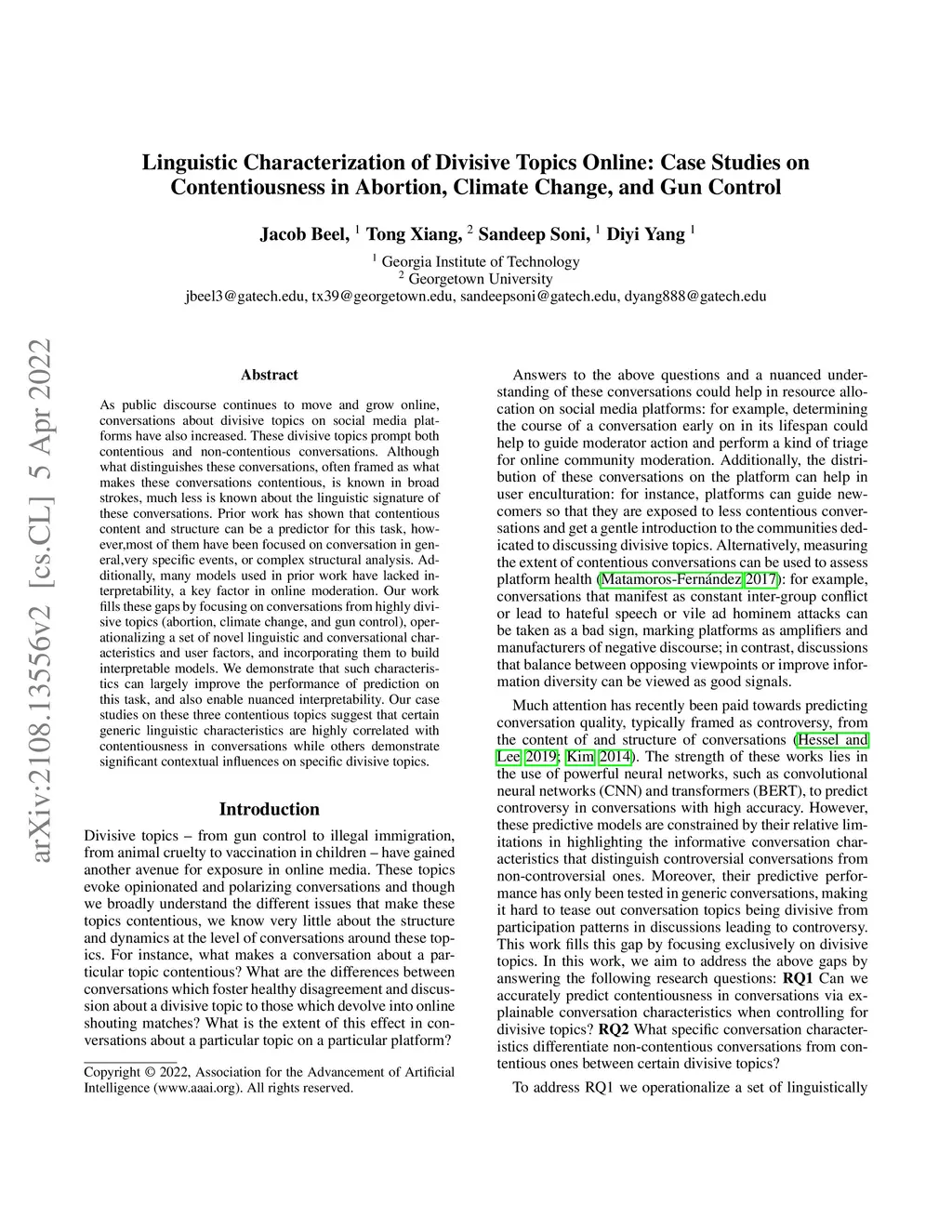As public discourse continues to move and grow online, conversations about divisive topics on social media platforms have also increased. These divisive topics prompt both contentious and non-contentious conversations. Although what distinguishes these conversations, often framed as what makes these conversations contentious, is known in broad strokes, much less is known about the linguistic signature of these conversations. Prior work has shown that contentious content and structure can be a predictor for this task, however, most of them have been focused on conversation in general, very specific events, or complex structural analysis. Additionally, many models used in prior work have lacked interpret-ability, a key factor in online moderation. Our work fills these gaps by focusing on conversations from highly divisive topics (abortion, climate change, and gun control), operationalizing a set of novel linguistic and conversational characteristics and user factors, and incorporating them to build interpretable models. We demonstrate that such characteristics can largely improve the performance of prediction on this task, and also enable nuanced interpretability. Our case studies on these three contentious topics suggest that certain generic linguistic characteristics are highly correlated with contentiousness in conversations while others demonstrate significant contextual influences on specific divisive topics.