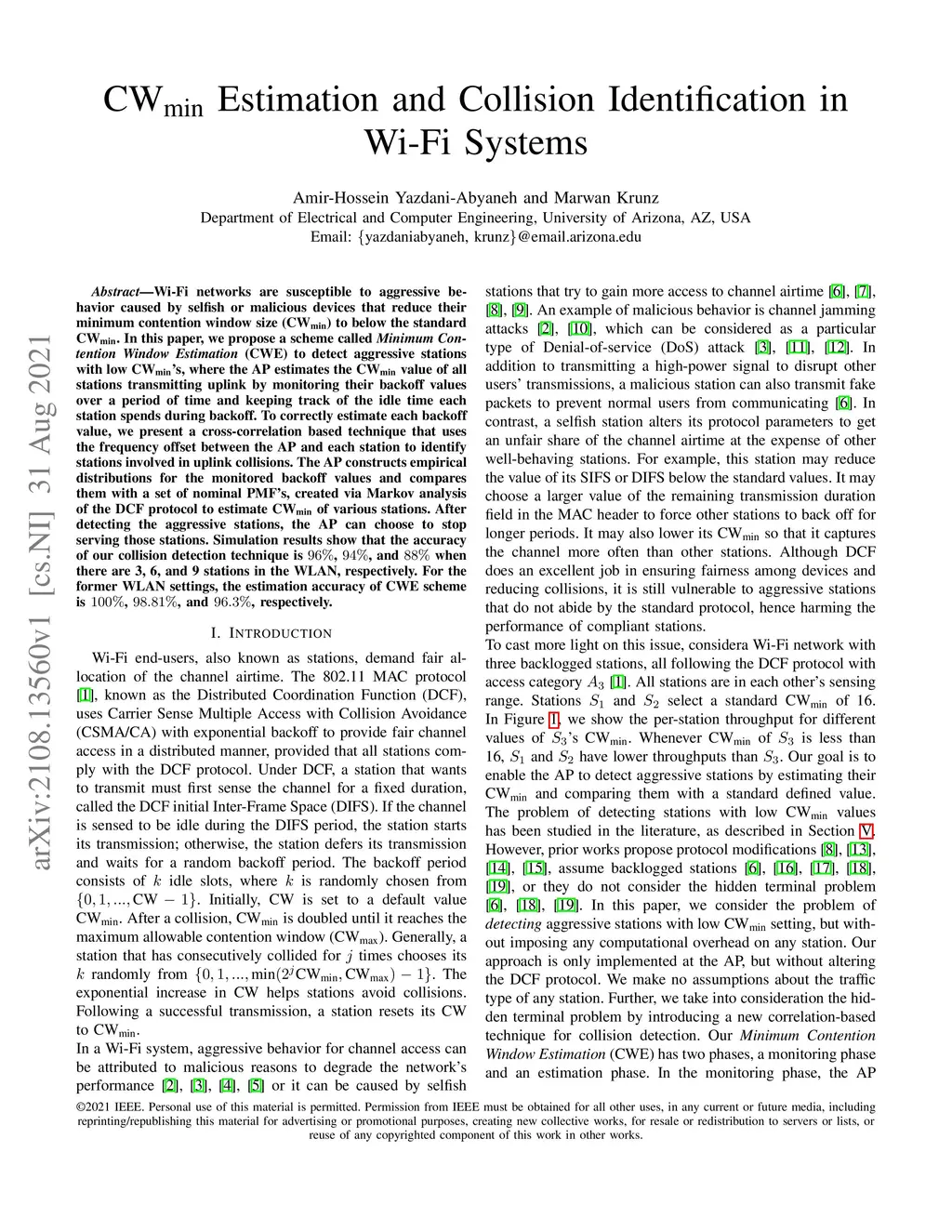 CWmin Estimation and Collision Identification in Wi-Fi Systems