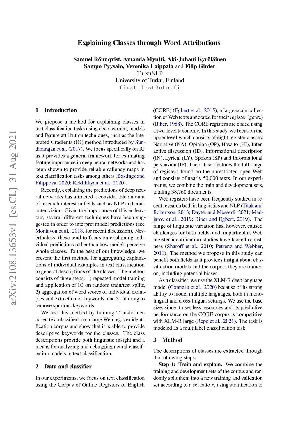 Explaining Classes through Word Attribution