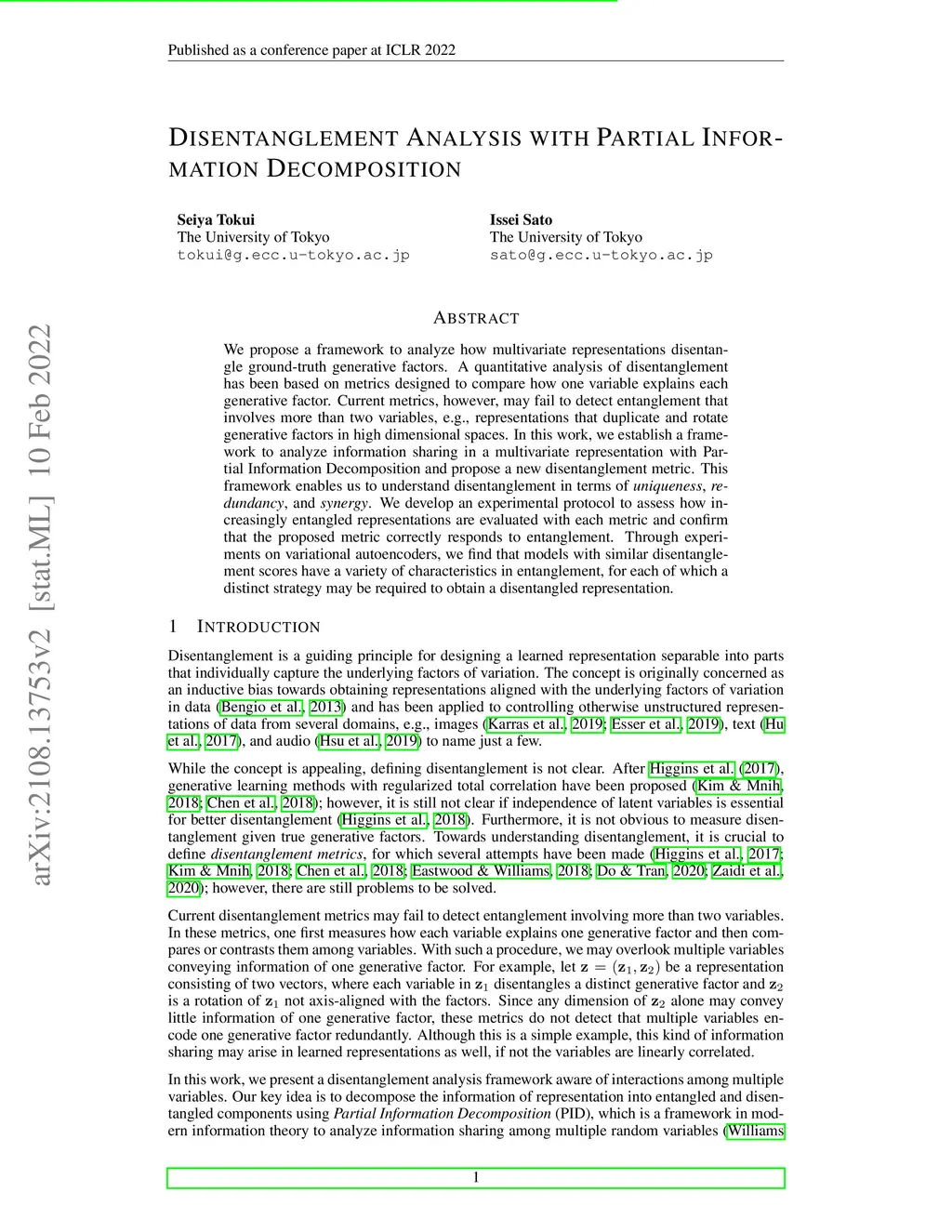 We propose a framework to analyze how multivariate representations disentangle ground-truth generative factors. A quantitative analysis of disentanglement has been based on metrics designed to compare how one variable explains each generative factor. Current metrics, however, may fail to detect entanglement that involves more than two variables, e.g., representations that duplicate and rotate generative factors in high dimensional spaces. In this work, we establish a framework to analyze information sharing in a multivariate representation with Partial Information Decomposition and propose a new disentanglement metric. This framework enables us to understand disentanglement in terms of uniqueness, redundancy, and synergy. We develop an experimental protocol to assess how increasingly entangled representations are evaluated with each metric and confirm that the proposed metric correctly responds to entanglement. Through experiments on variational autoencoders, we find that models with similar disentanglement scores have a variety of characteristics in entanglement, for each of which a distinct strategy may be required to obtain a disentangled representation.