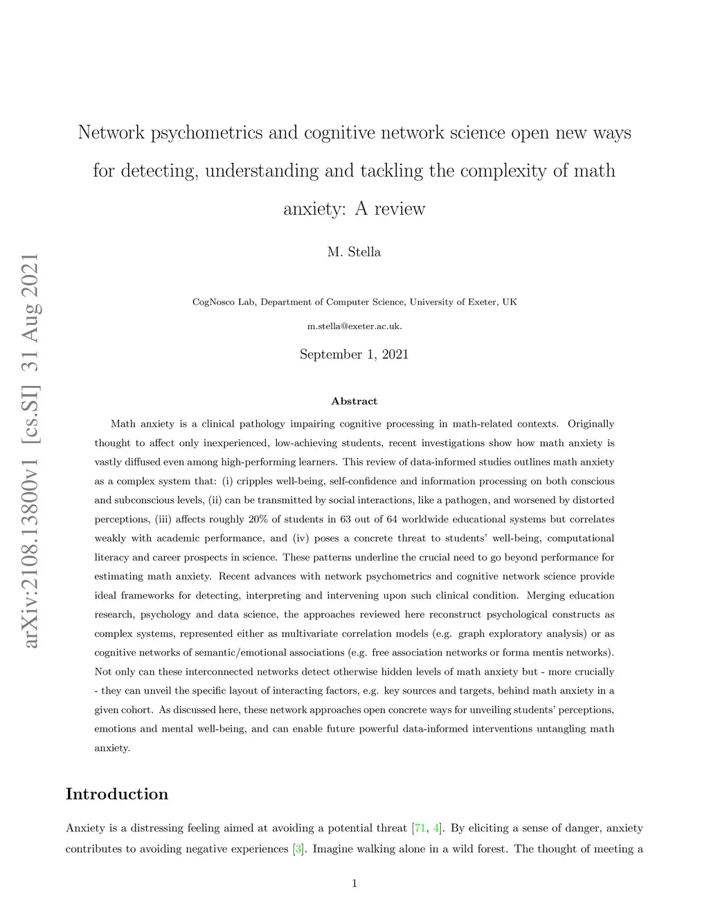 Math anxiety is a clinical pathology impairing cognitive processing in math-related contexts. Originally thought to affect only inexperienced, low-achieving students, recent investigations show how math anxiety is vastly diffused even among high-performing learners. This review of data-informed studies outlines math anxiety as a complex system that: (i) cripples well-being, self-confidence and information processing on both conscious and subconscious levels, (ii) can be transmitted by social interactions, like a pathogen, and worsened by distorted perceptions, (iii) affects roughly 20% of students in 63 out of 64 worldwide educational systems but correlates weakly with academic performance, and (iv) poses a concrete threat to students' well-being, computational literacy and career prospects in science. These patterns underline the crucial need to go beyond performance for estimating math anxiety. Recent advances with network psychometrics and cognitive network science provide ideal frameworks for detecting, interpreting and intervening upon such clinical condition. Merging education research, psychology and data science, the approaches reviewed here reconstruct psychological constructs as complex systems, represented either as multivariate correlation models (e.g. graph exploratory analysis) or as cognitive networks of semantic/emotional associations (e.g. free association networks or forma mentis networks). Not only can these interconnected networks detect otherwise hidden levels of math anxiety but - more crucially - they can unveil the specific layout of interacting factors, e.g. key sources and targets, behind math anxiety in a given cohort. As discussed here, these network approaches open concrete ways for unveiling students' perceptions, emotions and mental well-being, and can enable future powerful data-informed interventions untangling math anxiety.