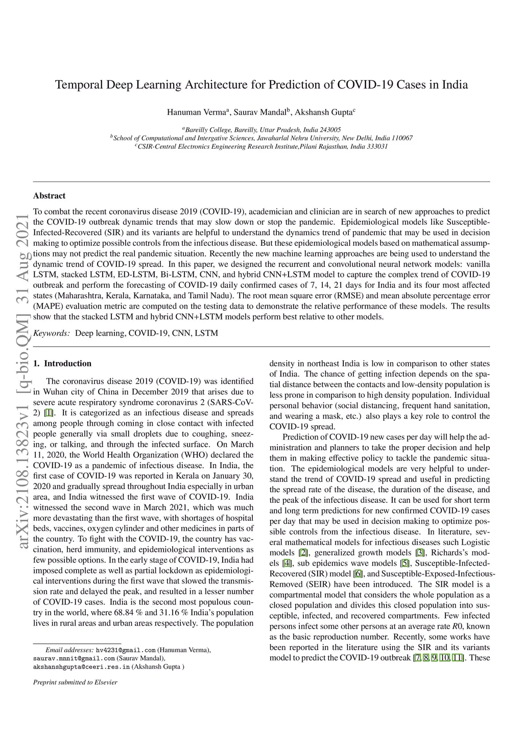 Temporal Deep Learning Architecture for Prediction of COVID-19 Cases in