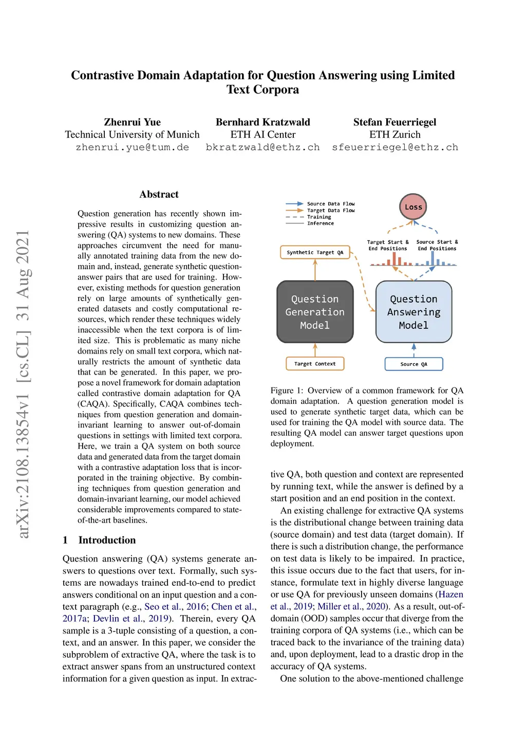 Contrastive Domain Adaptation for Question Answering using Limited Text