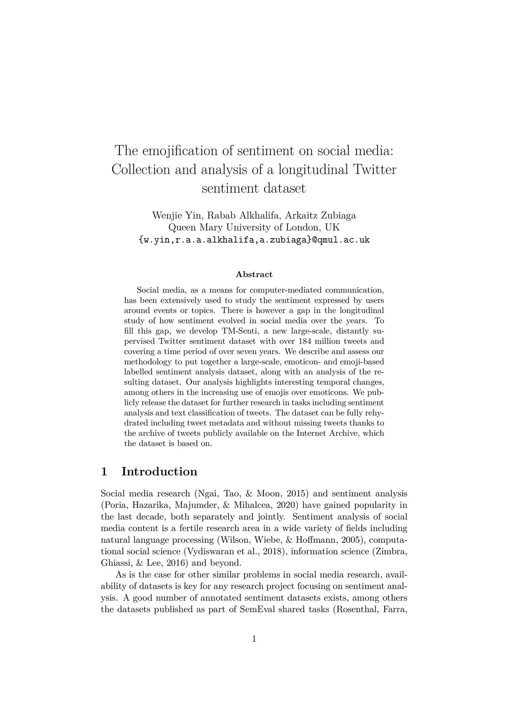 The emojification of sentiment on social media: Collection and analysis of a longitudinal Twitter sentiment dataset