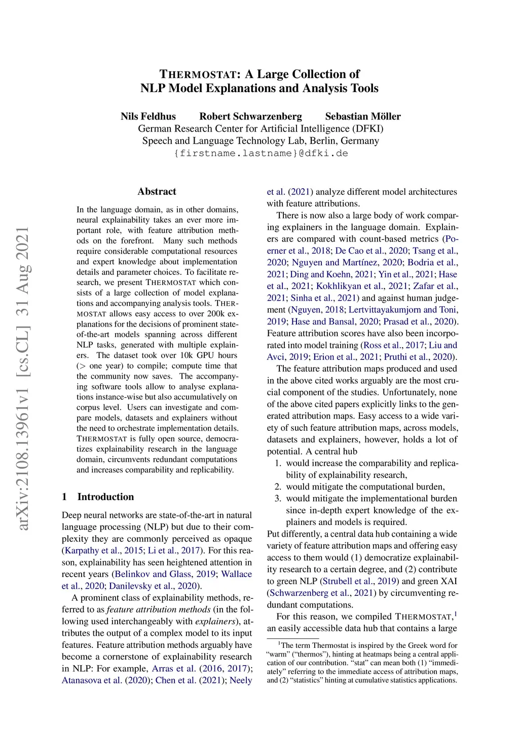 In the language domain, as in other domains, neural explainability takes an ever more important role, with feature attribution methods on the forefront. Many such methods require considerable computational resources and expert knowledge about implementation details and parameter choices. To facilitate research, we present Thermostat which consists of a large collection of model explanations and accompanying analysis tools. Thermostat allows easy access to over 200k explanations for the decisions of prominent state-of-the-art models spanning across different NLP tasks, generated with multiple explainers. The dataset took over 10k GPU hours (> one year) to compile; compute time that the community now saves. The accompanying software tools allow to analyse explanations instance-wise but also accumulatively on corpus level. Users can investigate and compare models, datasets and explainers without the need to orchestrate implementation details. Thermostat is fully open source, democratizes explainability research in the language domain, circumvents redundant computations and increases comparability and replicability.