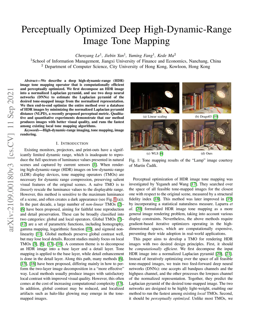 We describe a deep high-dynamic-range (HDR) image tone mapping operator that is computationally efficient and perceptually optimized. We first decompose an HDR image into a normalized Laplacian pyramid, and use two deep neural networks (DNNs) to estimate the Laplacian pyramid of the desired tone-mapped image from the normalized representation. We then end-to-end optimize the entire method over a database of HDR images by minimizing the normalized Laplacian pyramid distance (NLPD), a recently proposed perceptual metric. Qualitative and quantitative experiments demonstrate that our method produces images with better visual quality, and runs the fastest among existing local tone mapping algorithms.