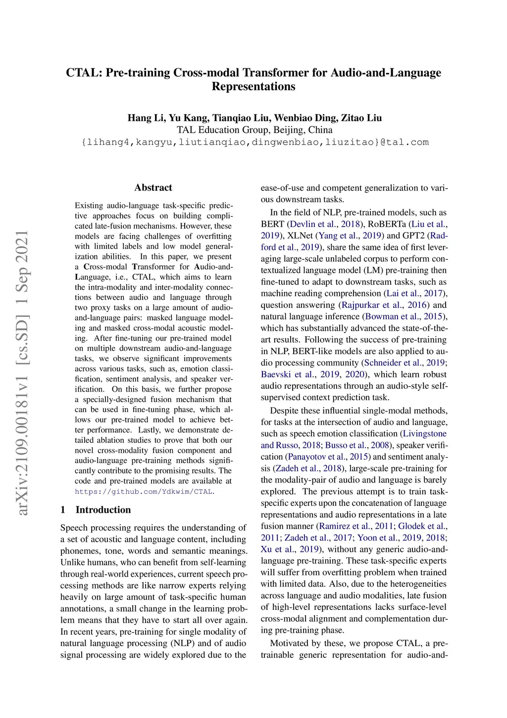 CTAL: Pre-training Cross-modal Transformer for Audio-and-Language