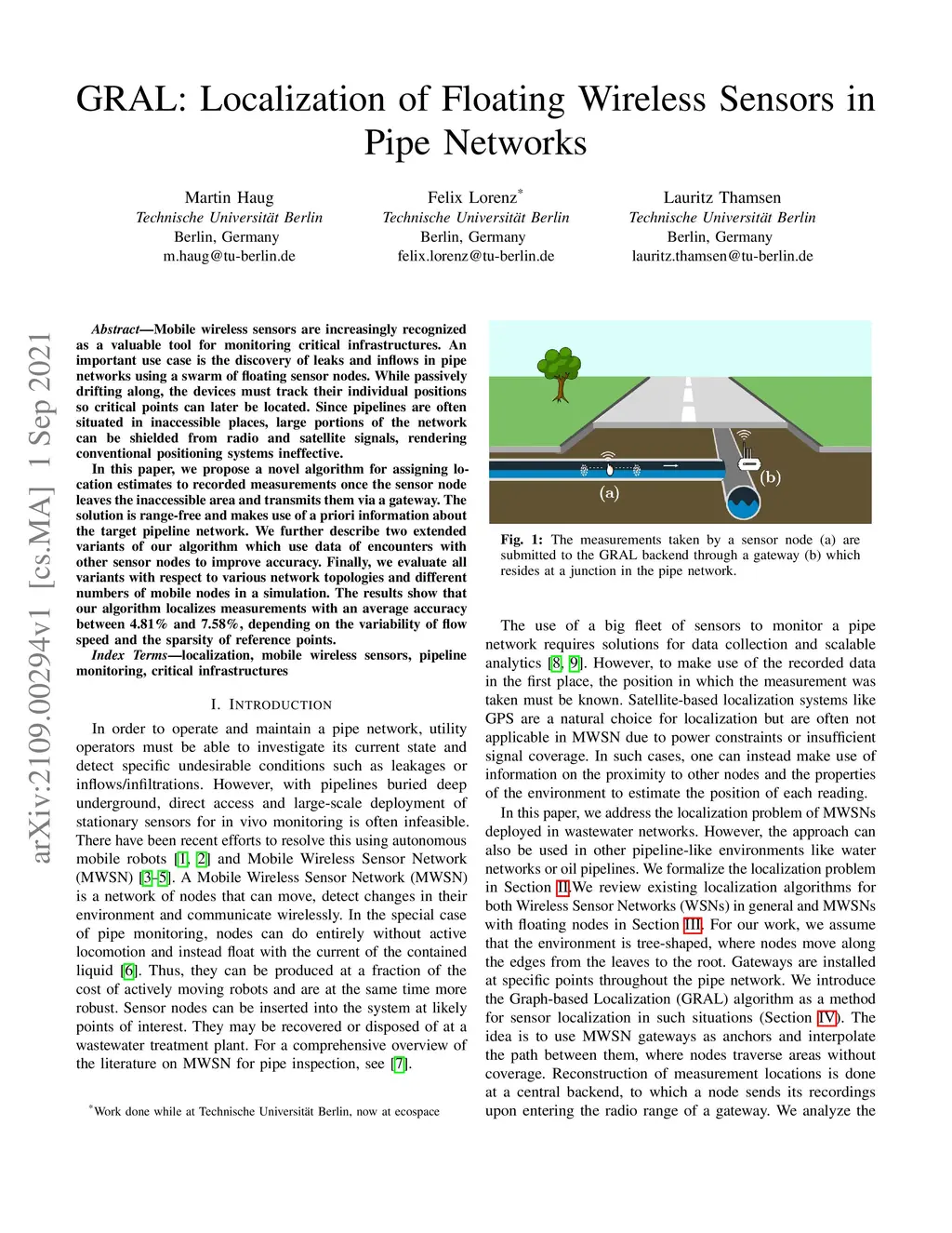 GRAL: Localization of Floating Wireless Sensors in Pipe Networks
