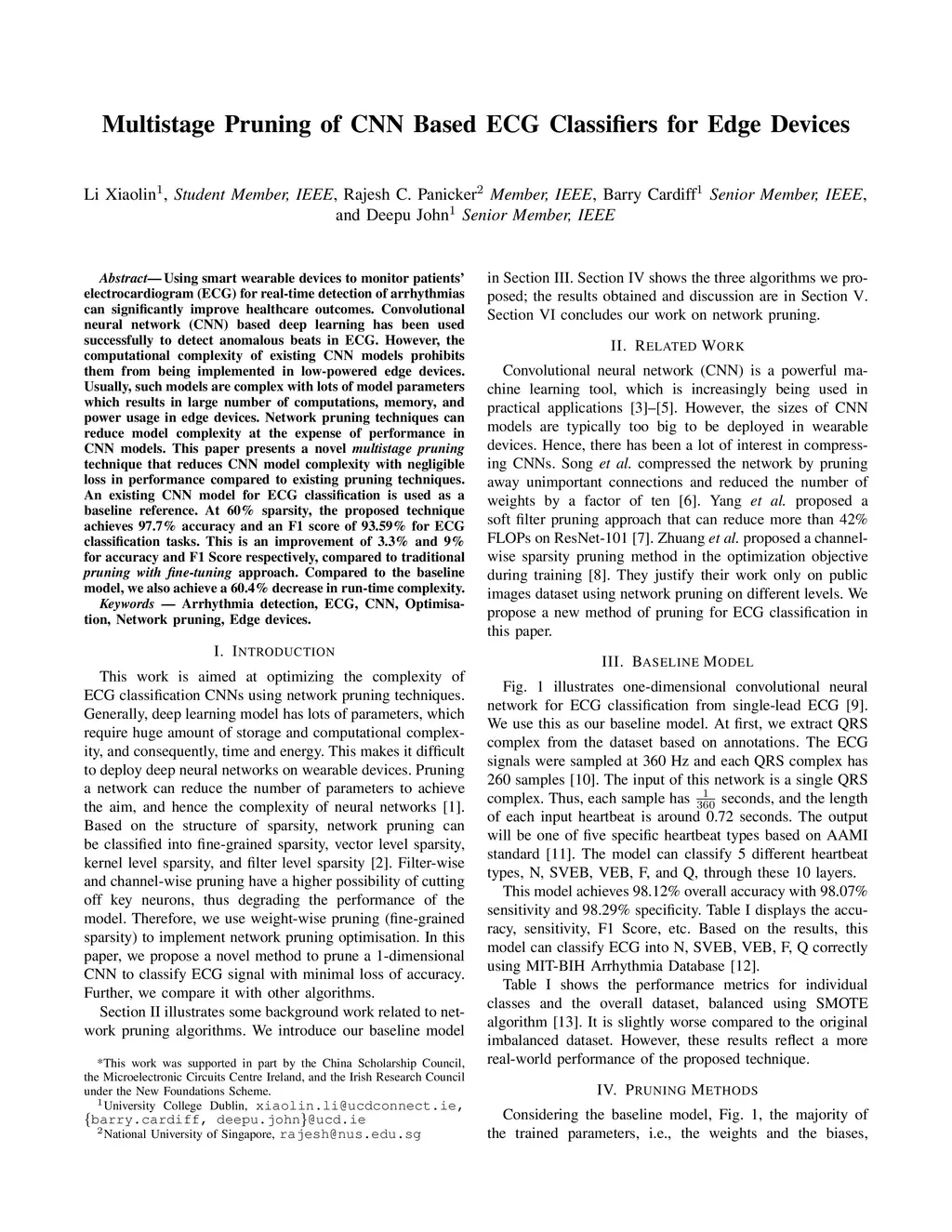 Multistage Pruning of CNN Based ECG Classifiers for Edge Devices