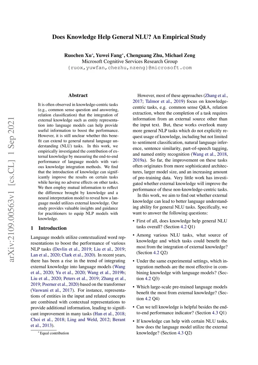 It is often observed in knowledge-centric tasks (e.g., common sense question and answering, relation classification) that the integration of external knowledge such as entity representation into language models can help provide useful information to boost the performance. However, it is still unclear whether this benefit can extend to general natural language understanding (NLU) tasks. In this work, we empirically investigated the contribution of external knowledge by measuring the end-to-end performance of language models with various knowledge integration methods. We find that the introduction of knowledge can significantly improve the results on certain tasks while having no adverse effects on other tasks. We then employ mutual information to reflect the difference brought by knowledge and a neural interpretation model to reveal how a language model utilizes external knowledge. Our study provides valuable insights and guidance for practitioners to equip NLP models with knowledge.