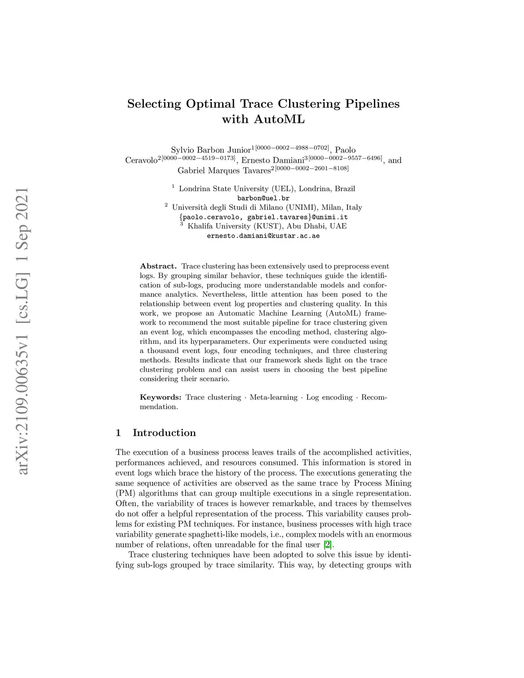 Selecting Optimal Trace Clustering Pipelines with AutoML