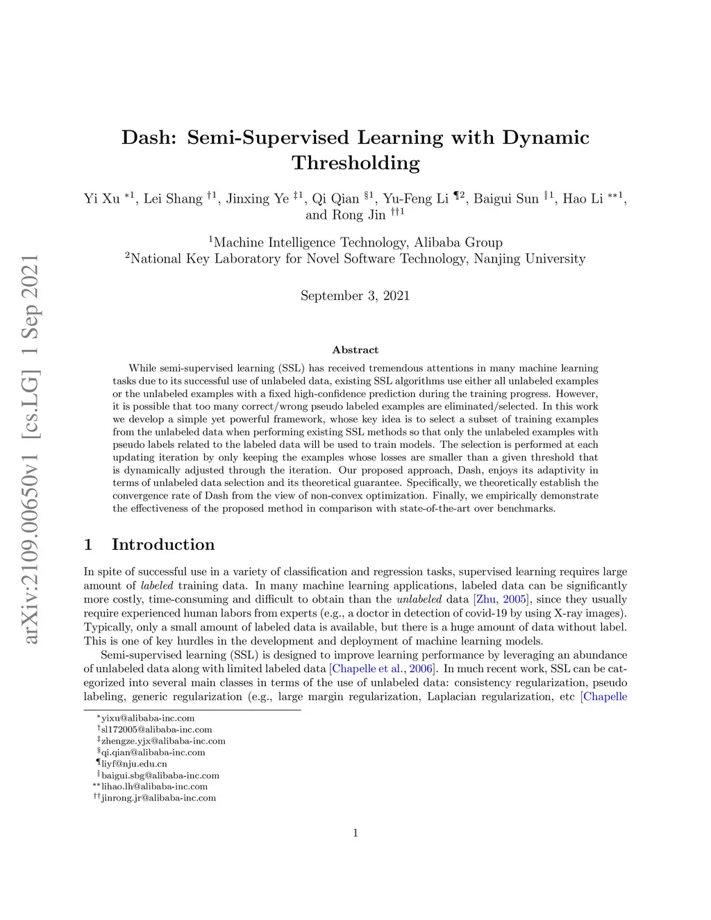 Dash: Semi-Supervised Learning with Dynamic Thresholding