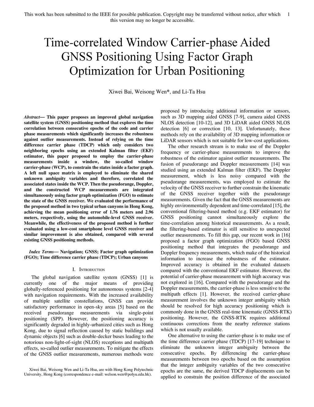 Time-correlated Window Carrier-phase Aided GNSS Positioning Using Factor