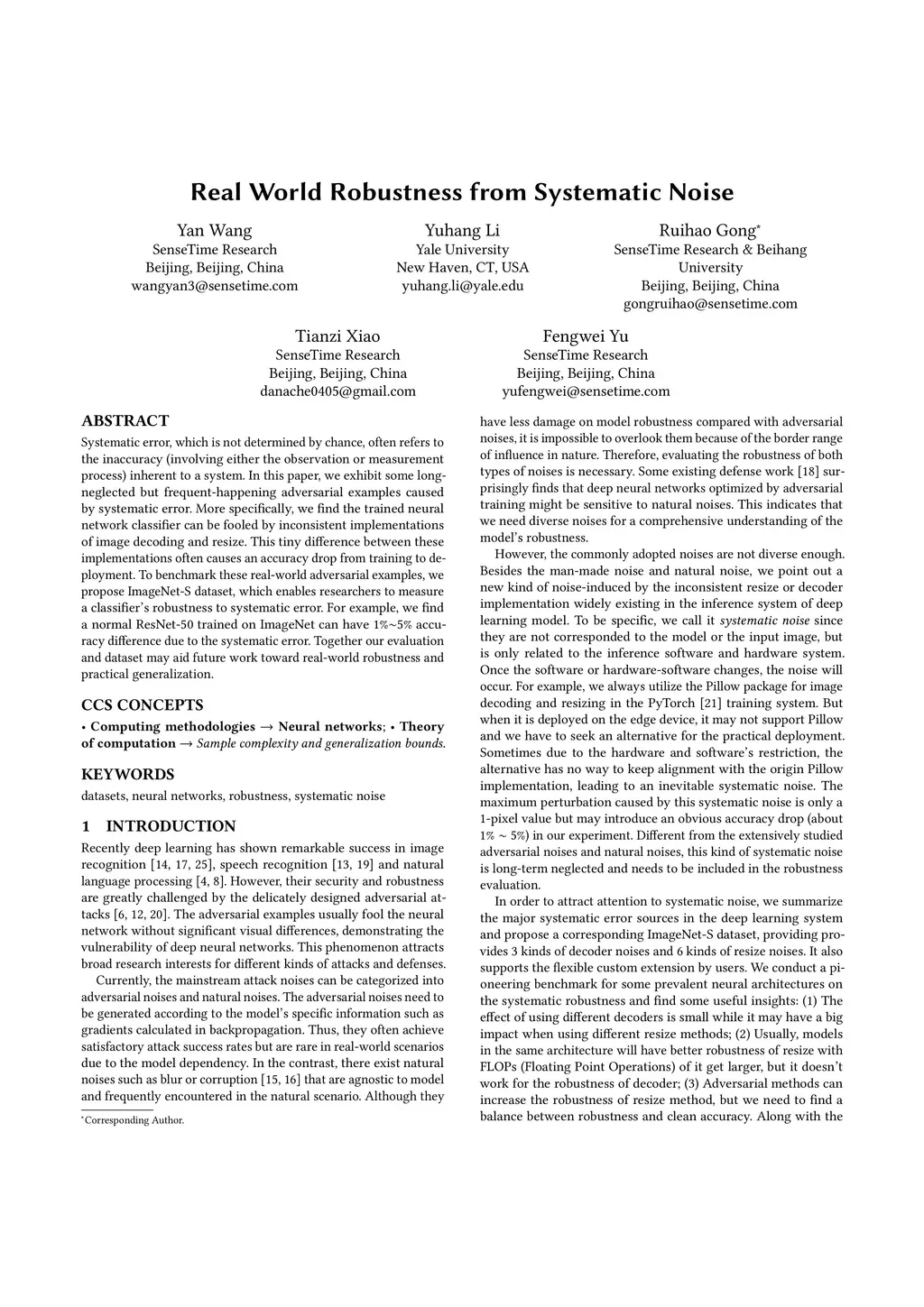 Systematic error, which is not determined by chance, often refers to the inaccuracy (involving either the observation or measurement process) inherent to a system. In this paper, we exhibit some long-neglected but frequent-happening adversarial examples caused by systematic error. More specifically, we find the trained neural network classifier can be fooled by inconsistent implementations of image decoding and resize. This tiny difference between these implementations often causes an accuracy drop from training to deployment. To benchmark these real-world adversarial examples, we propose ImageNet-S dataset, which enables researchers to measure a classifier's robustness to systematic error. For example, we find a normal ResNet-50 trained on ImageNet can have 1%-5% accuracy difference due to the systematic error. Together our evaluation and dataset may aid future work toward real-world robustness and practical generalization.