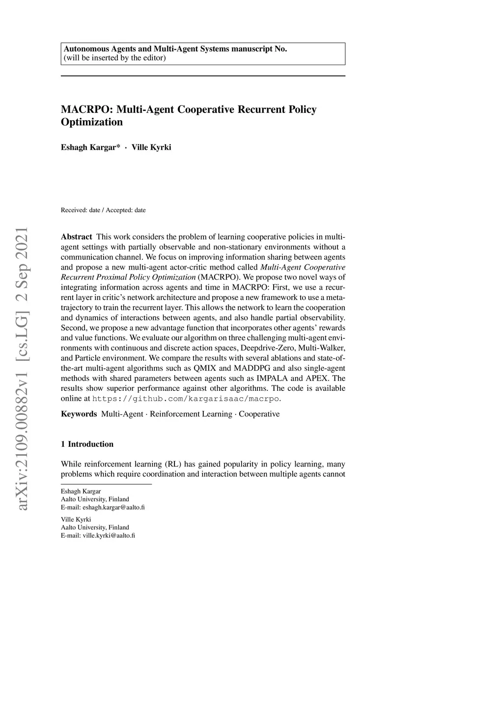 MACRPO: Multi-Agent Cooperative Recurrent Policy Optimization
