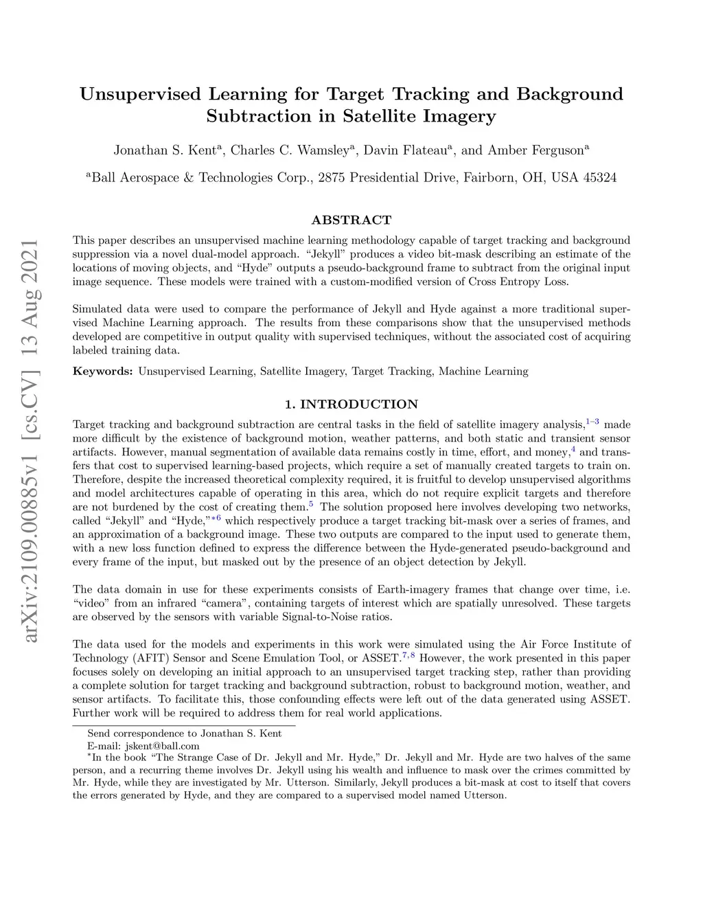 This paper describes an unsupervised machine learning methodology capable of target tracking and background suppression via a novel dual-model approach. ``Jekyll`` produces a video bit-mask describing an estimate of the locations of moving objects, and ``Hyde`` outputs a pseudo-background frame to subtract from the original input image sequence. These models were trained with a custom-modified version of Cross Entropy Loss. Simulated data were used to compare the performance of Jekyll and Hyde against a more traditional supervised Machine Learning approach. The results from these comparisons show that the unsupervised methods developed are competitive in output quality with supervised techniques, without the associated cost of acquiring labeled training data.