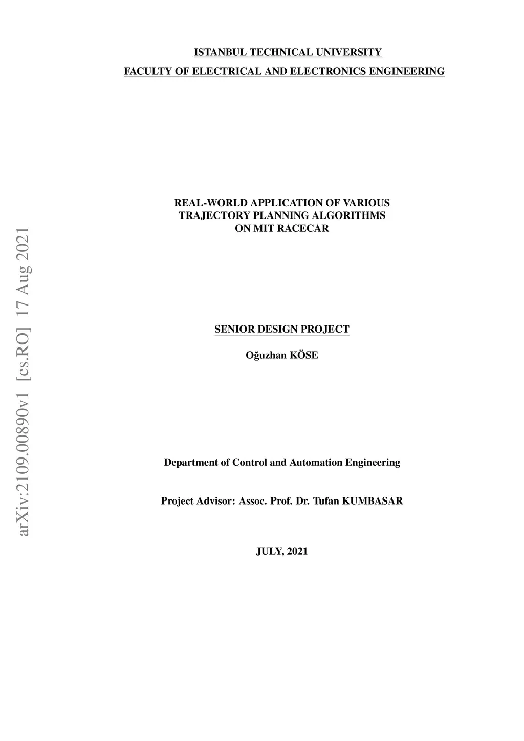 Real-World Application of Various Trajectory Planning Algorithms on MIT