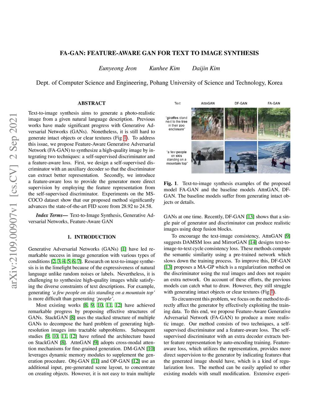 FA-GAN: Feature-Aware GAN for Text to Image Synthesis