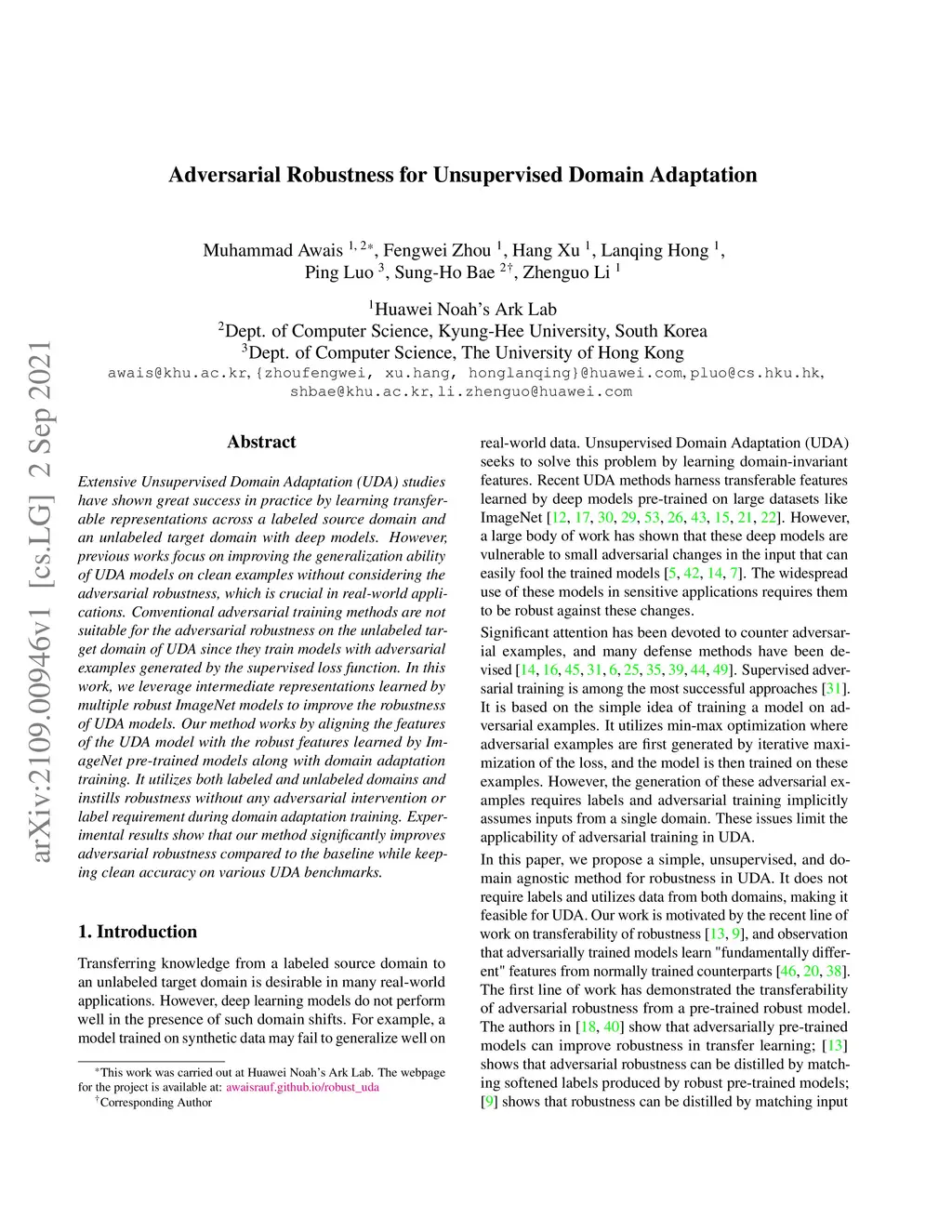 Adversarial Robustness for Unsupervised Domain Adaptation