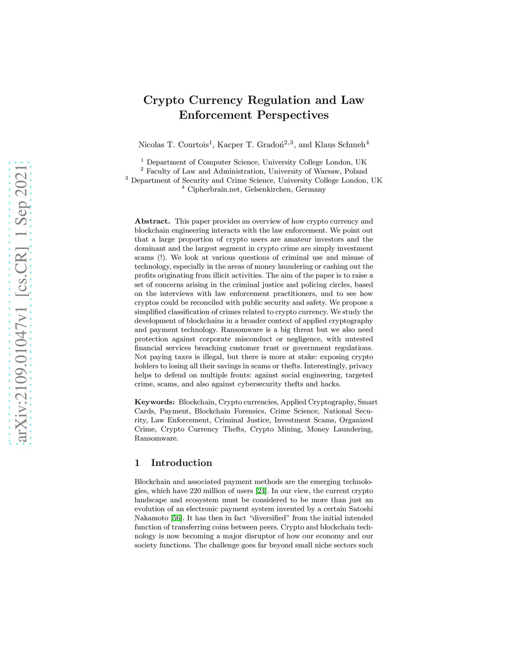 Crypto Currency Regulation and Law Enforcement Perspectives