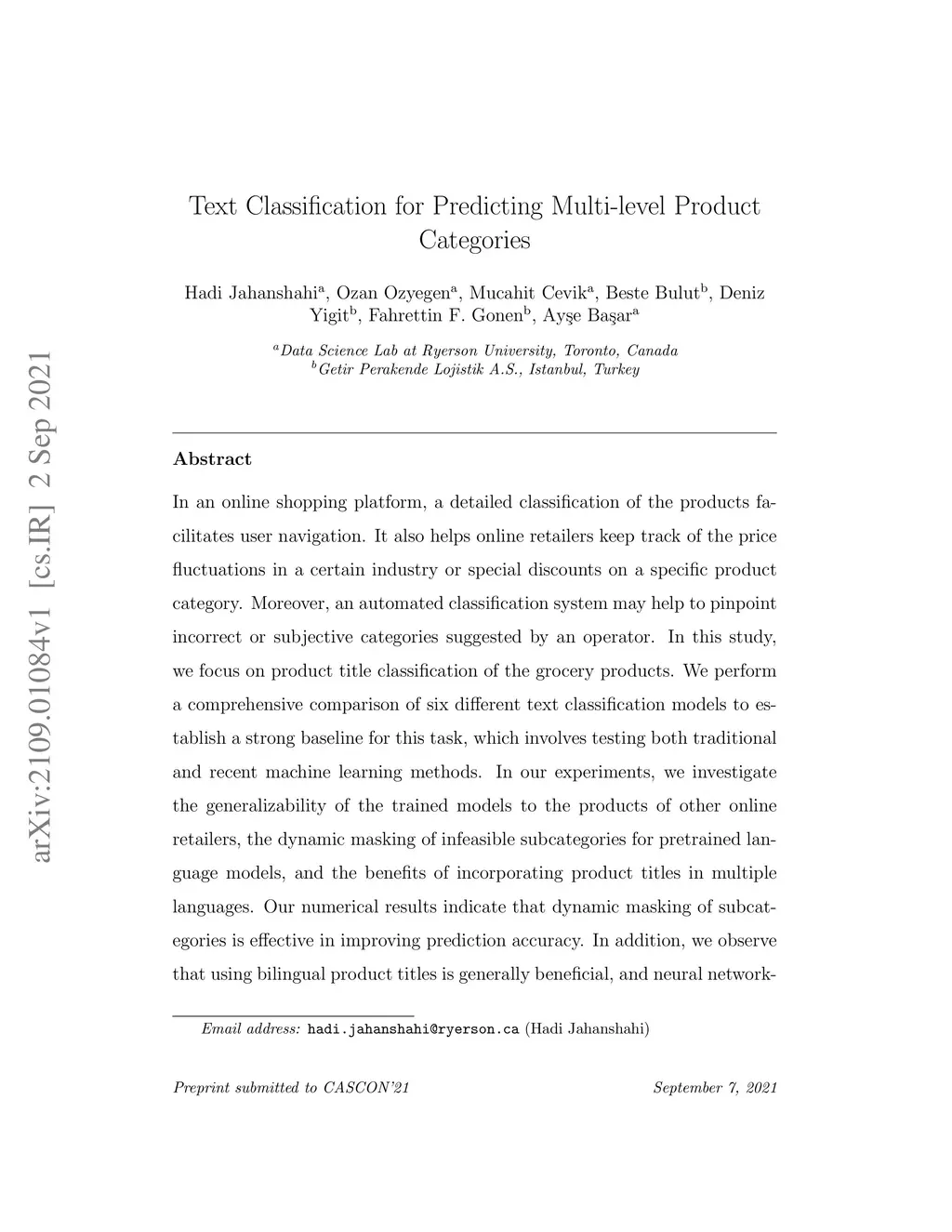 In an online shopping platform, a detailed classification of the products facilitates user navigation. It also helps online retailers keep track of the price fluctuations in a certain industry or special discounts on a specific product category. Moreover, an automated classification system may help to pinpoint incorrect or subjective categories suggested by an operator. In this study, we focus on product title classification of the grocery products. We perform a comprehensive comparison of six different text classification models to establish a strong baseline for this task, which involves testing both traditional and recent machine learning methods. In our experiments, we investigate the generalizability of the trained models to the products of other online retailers, the dynamic masking of infeasible subcategories for pretrained language models, and the benefits of incorporating product titles in multiple languages. Our numerical results indicate that dynamic masking of subcategories is effective in improving prediction accuracy. In addition, we observe that using bilingual product titles is generally beneficial, and neural network-based models perform significantly better than SVM and XGBoost models. Lastly, we investigate the reasons for the misclassified products and propose future research directions to further enhance the prediction models.