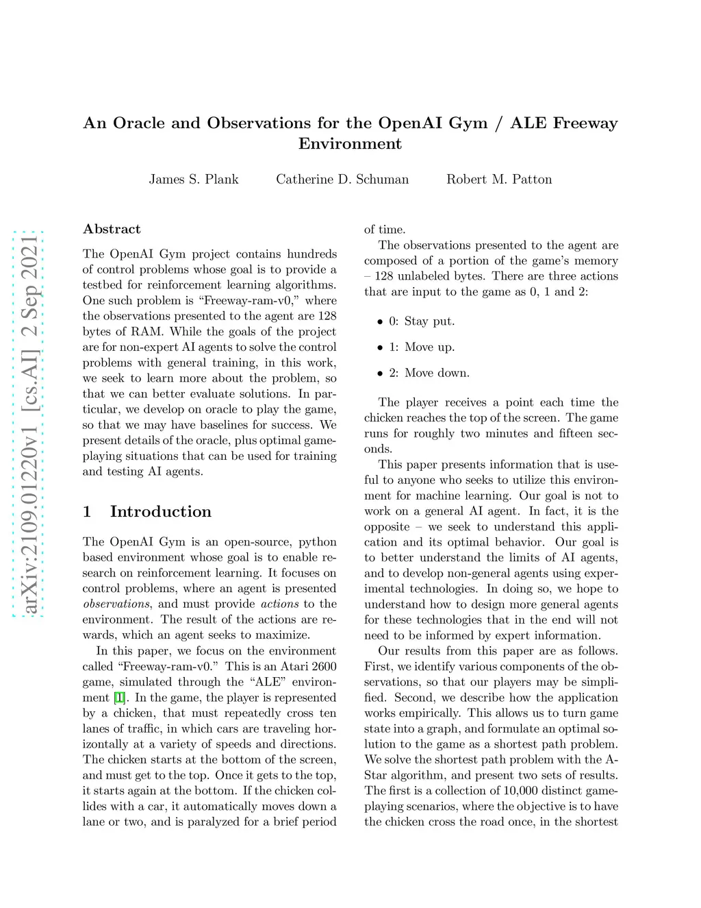 An Oracle and Observations for the OpenAI Gym / ALE Freeway Environment
