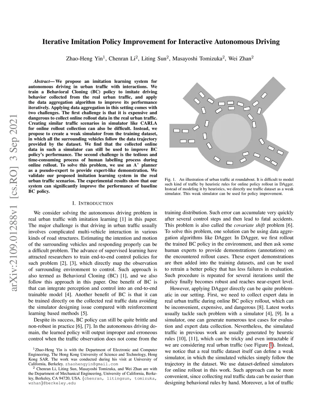 We propose an imitation learning system for autonomous driving in urban traffic with interactions. We train a Behavioral Cloning~(BC) policy to imitate driving behavior collected from the real urban traffic, and apply the data aggregation algorithm to improve its performance iteratively. Applying data aggregation in this setting comes with two challenges. The first challenge is that it is expensive and dangerous to collect online rollout data in the real urban traffic. Creating similar traffic scenarios in simulator like CARLA for online rollout collection can also be difficult. Instead, we propose to create a weak simulator from the training dataset, in which all the surrounding vehicles follow the data trajectory provided by the dataset. We find that the collected online data in such a simulator can still be used to improve BC policy's performance. The second challenge is the tedious and time-consuming process of human labelling process during online rollout. To solve this problem, we use an A planner as a pseudo-expert to provide expert-like demonstration. We validate our proposed imitation learning system in the real urban traffic scenarios. The experimental results show that our system can significantly improve the performance of baseline BC policy.
