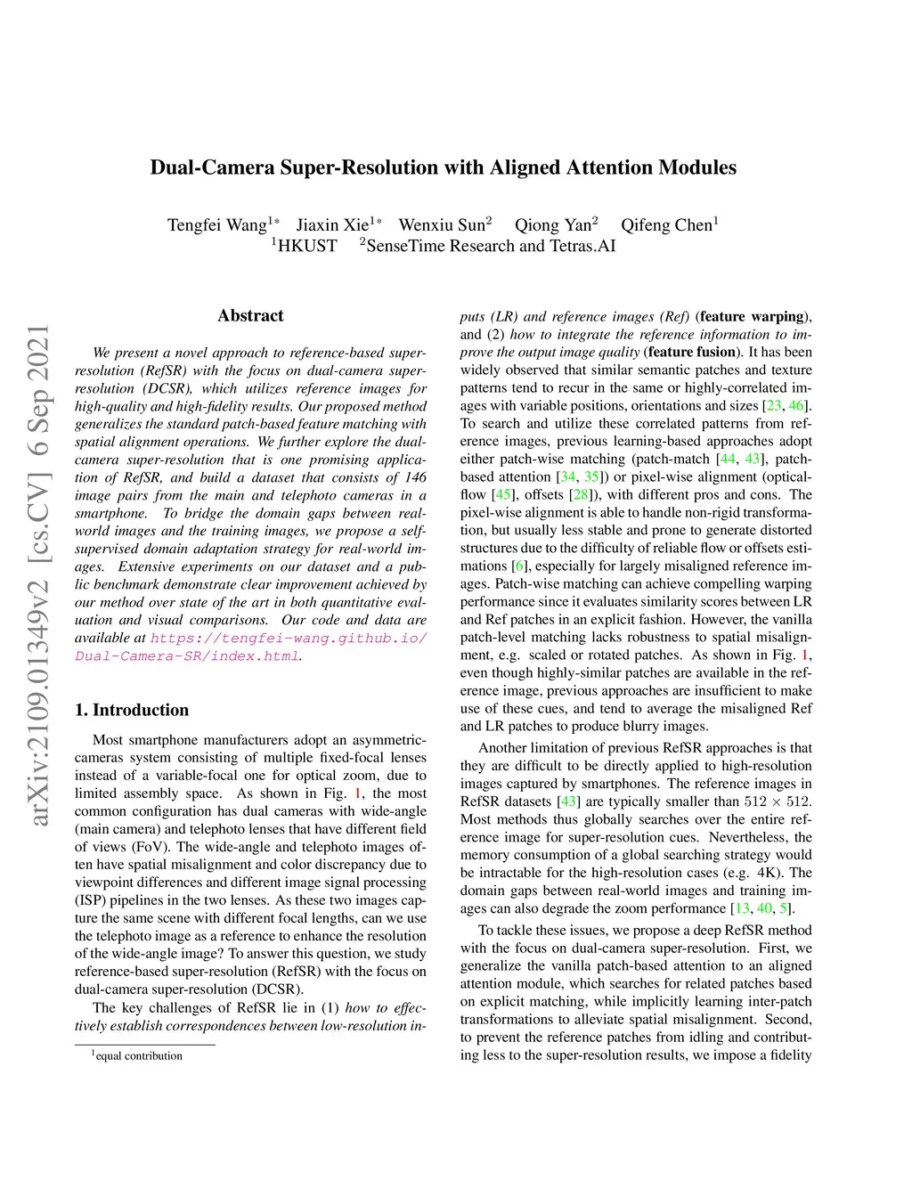 Dual-Camera Super-Resolution with Aligned Attention Modules