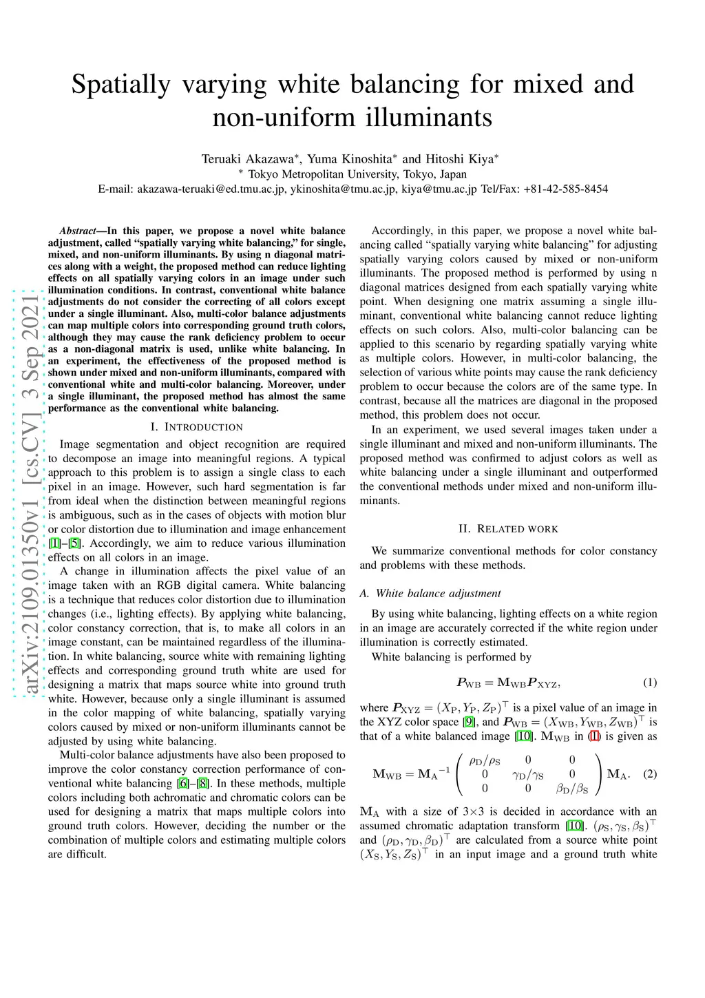 Spatially varying white balancing for mixed and non-uniform illuminants