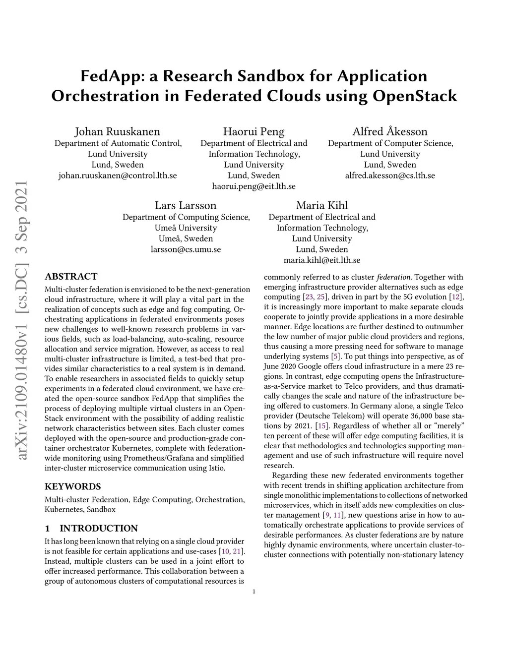 FedApp: a Research Sandbox for Application Orchestration in Federated