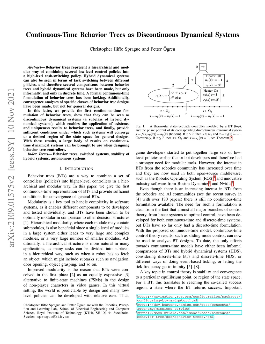 Continuous-Time Behavior Trees as Discontinuous Dynamical Systems
