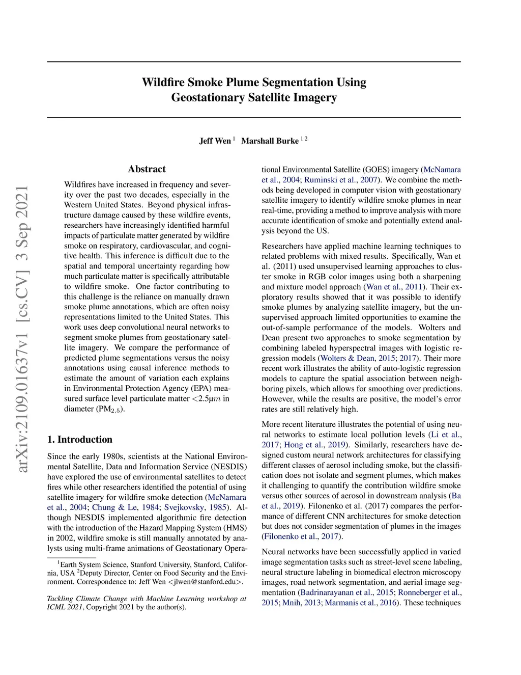 Wildfires have increased in frequency and severity over the past two decades, especially in the Western United States. Beyond physical infrastructure damage caused by these wildfire events, researchers have increasingly identified harmful impacts of particulate matter generated by wildfire smoke on respiratory, cardiovascular, and cognitive health. This inference is difficult due to the spatial and temporal uncertainty regarding how much particulate matter is specifically attributable to wildfire smoke. One factor contributing to this challenge is the reliance on manually drawn smoke plume annotations, which are often noisy representations limited to the United States. This work uses deep convolutional neural networks to segment smoke plumes from geostationary satellite imagery. We compare the performance of predicted plume segmentations versus the noisy annotations using causal inference methods to estimate the amount of variation each explains in Environmental Protection Agency (EPA) measured surface level particulate matter <2.5um in diameter ().