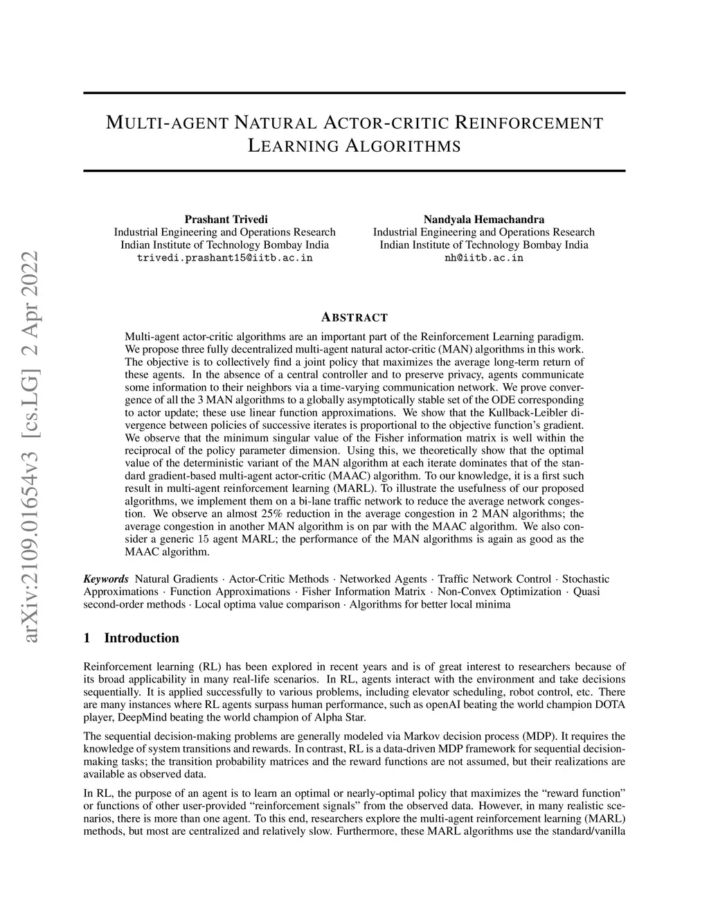 Multi-agent actor-critic algorithms are an important part of the Reinforcement Learning paradigm. We propose three fully decentralized multi-agent natural actor-critic (MAN) algorithms in this work. The objective is to collectively find a joint policy that maximizes the average long-term return of these agents. In the absence of a central controller and to preserve privacy, agents communicate some information to their neighbors via a time-varying communication network. We prove convergence of all the 3 MAN algorithms to a globally asymptotically stable set of the ODE corresponding to actor update; these use linear function approximations. We show that the Kullback-Leibler divergence between policies of successive iterates is proportional to the objective function's gradient. We observe that the minimum singular value of the Fisher information matrix is well within the reciprocal of the policy parameter dimension. Using this, we theoretically show that the optimal value of the deterministic variant of the MAN algorithm at each iterate dominates that of the standard gradient-based multi-agent actor-critic (MAAC) algorithm. To our knowledge, it is a first such result in multi-agent reinforcement learning (MARL). To illustrate the usefulness of our proposed algorithms, we implement them on a bi-lane traffic network to reduce the average network congestion. We observe an almost 25\% reduction in the average congestion in 2 MAN algorithms; the average congestion in another MAN algorithm is on par with the MAAC algorithm. We also consider a generic agent MARL; the performance of the MAN algorithms is again as good as the MAAC algorithm.