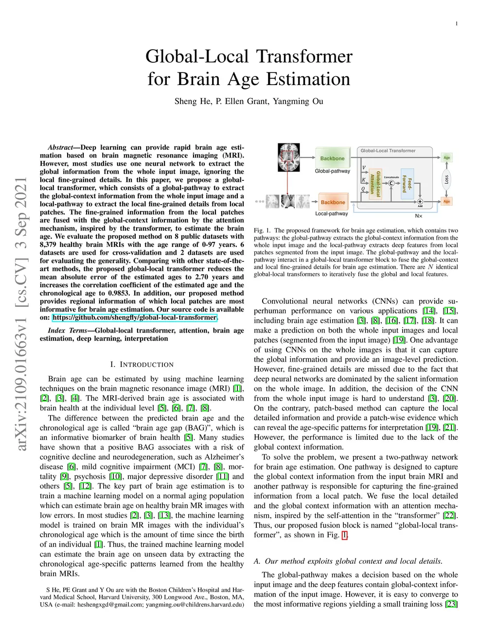 Global-Local Transformer for Brain Age Estimation