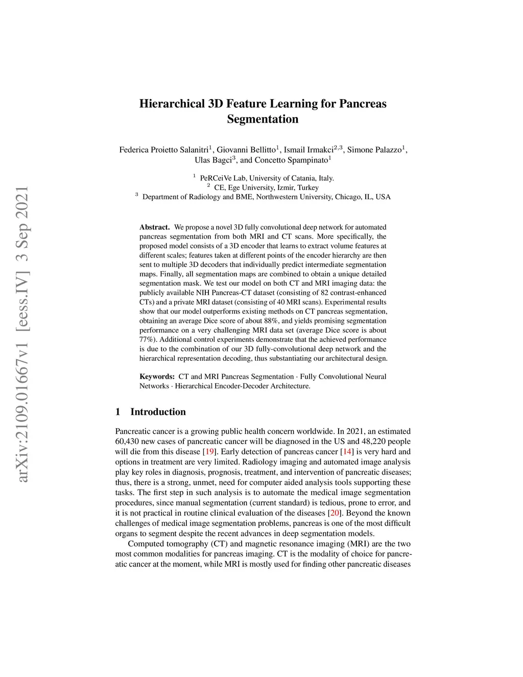 Hierarchical 3D Feature Learning for Pancreas Segmentation