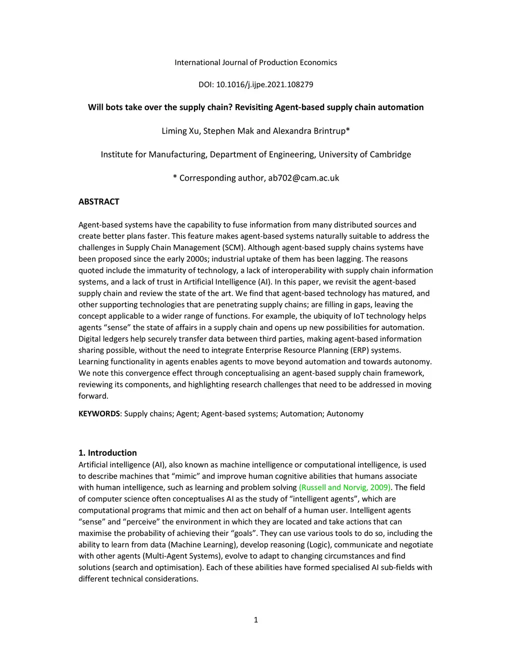 Will bots take over the supply chain? Revisiting Agent-based supply