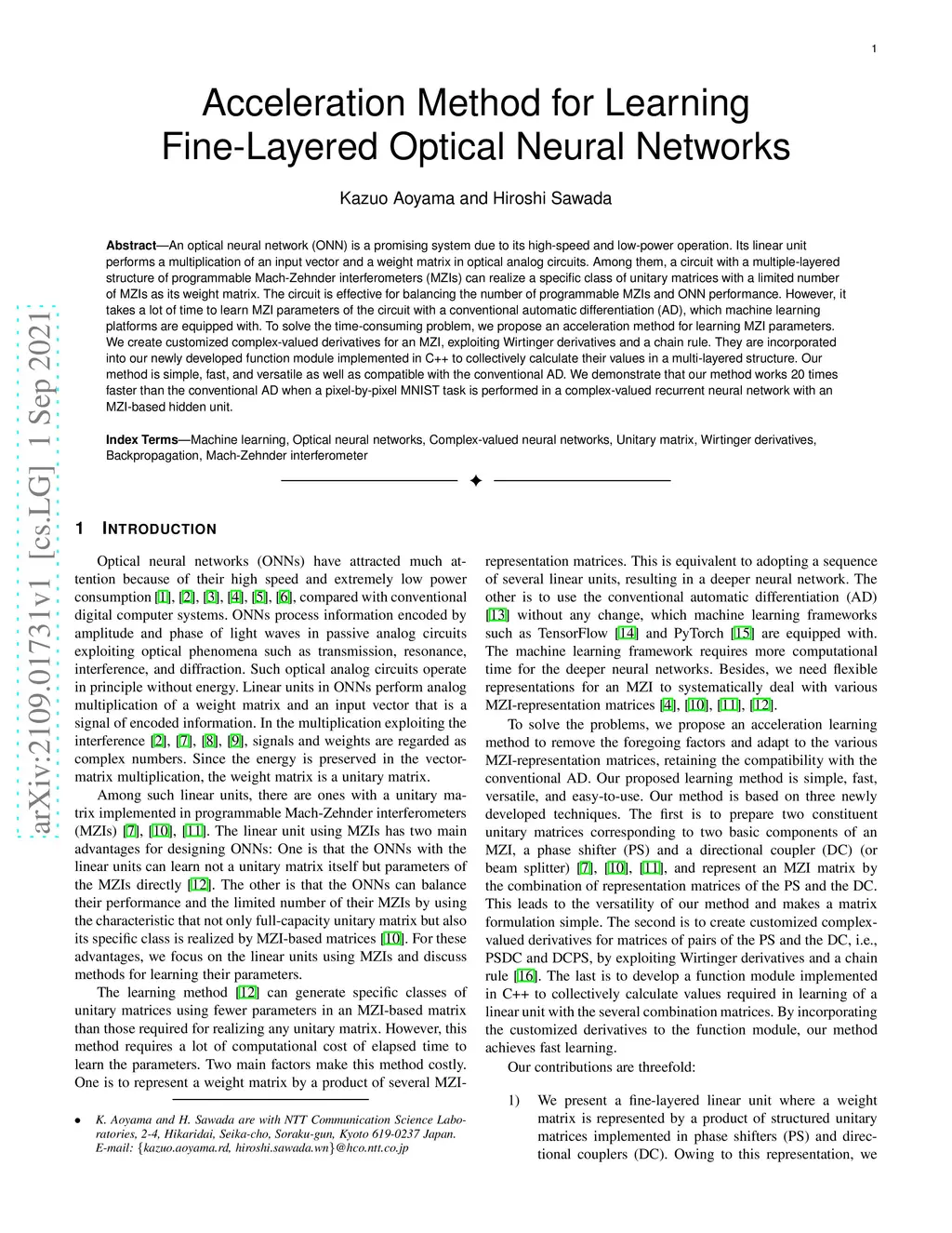 Acceleration Method for Learning Fine-Layered Optical Neural Networks