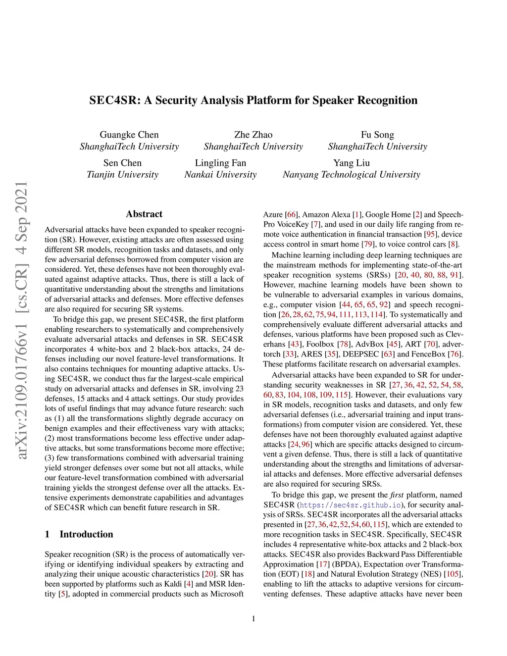 SEC4SR: A Security Analysis Platform for Speaker Recognition