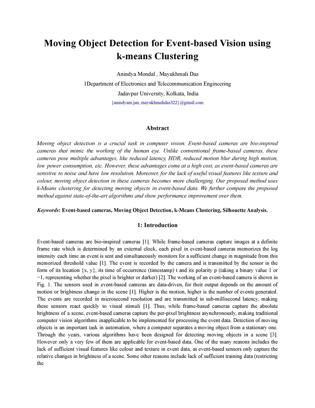 Moving Object Detection for Event-based Vision using k-means Clustering