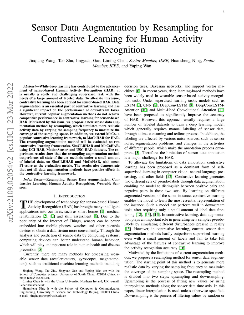 Sensor Data Augmentation by Resampling for Contrastive Learning in Human