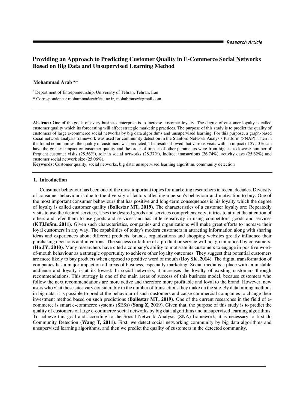 Providing an Approach to Predicting Customer Quality in E-Commerce