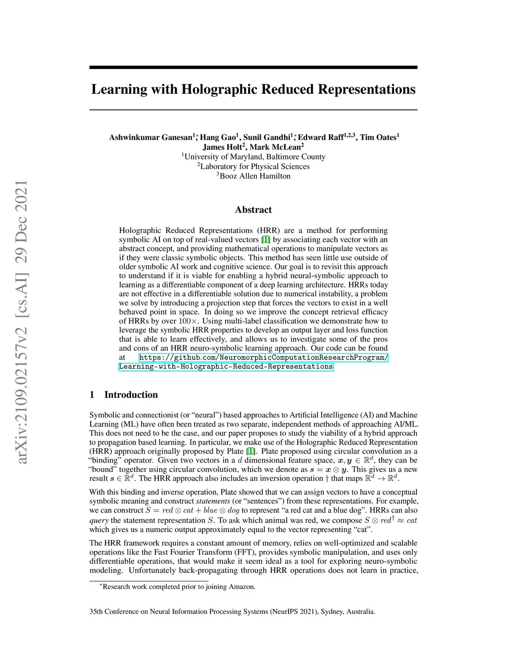 Holographic Reduced Representations (HRR) are a method for performing symbolic AI on top of real-valued vectors by associating each vector with an abstract concept, and providing mathematical operations to manipulate vectors as if they were classic symbolic objects. This method has seen little use outside of older symbolic AI work and cognitive science. Our goal is to revisit this approach to understand if it is viable for enabling a hybrid neural-symbolic approach to learning as a differentiable component of a deep learning architecture. HRRs today are not effective in a differentiable solution due to numerical instability, a problem we solve by introducing a projection step that forces the vectors to exist in a well behaved point in space. In doing so we improve the concept retrieval efficacy of HRRs by over . Using multi-label classification we demonstrate how to leverage the symbolic HRR properties to develop an output layer and loss function that is able to learn effectively, and allows us to investigate some of the pros and cons of an HRR neuro-symbolic learning approach. Our code can be found at https://github.com/NeuromorphicComputationResearchProgram/Learning-with-Holographic-Reduced-Representations