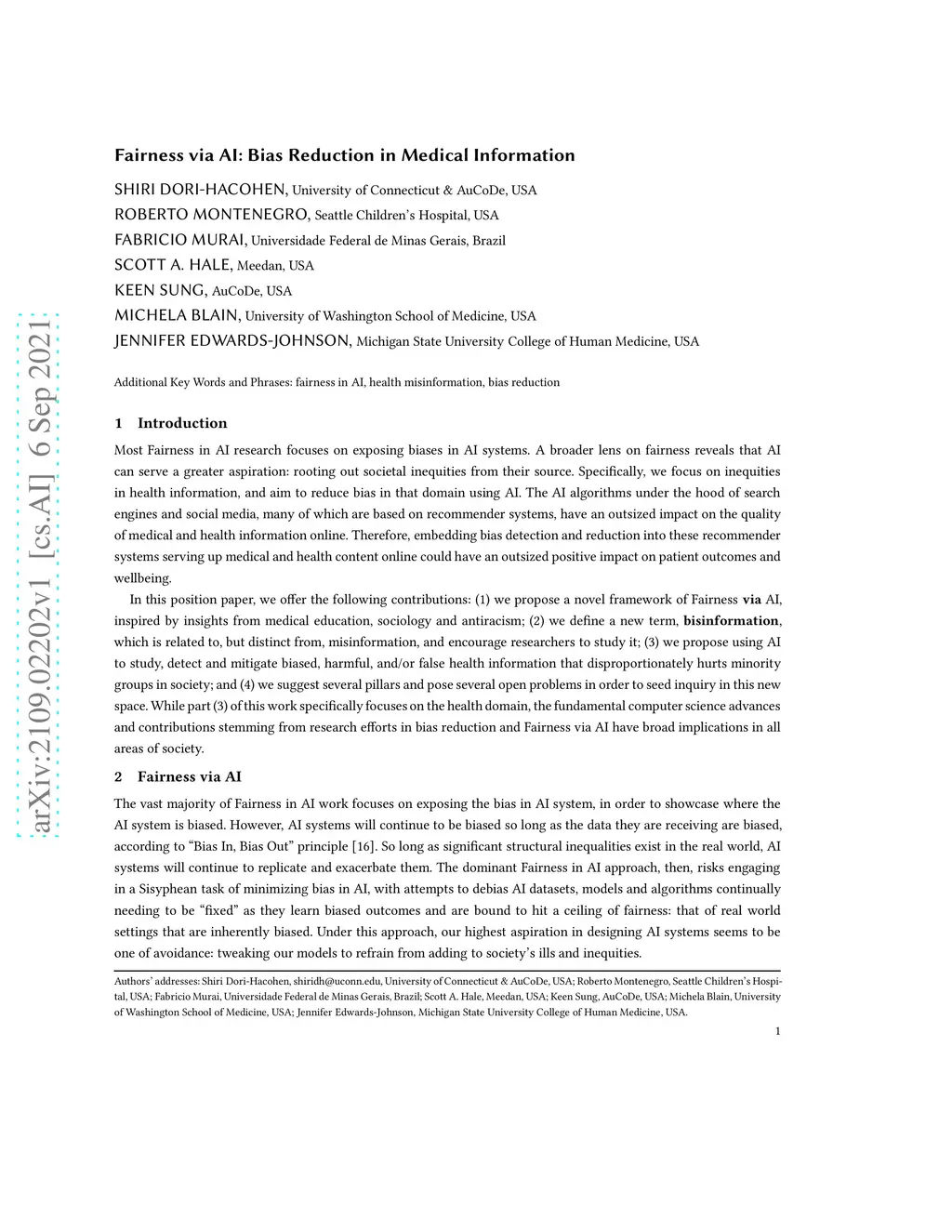 Most Fairness in AI research focuses on exposing biases in AI systems. A broader lens on fairness reveals that AI can serve a greater aspiration: rooting out societal inequities from their source. Specifically, we focus on inequities in health information, and aim to reduce bias in that domain using AI. The AI algorithms under the hood of search engines and social media, many of which are based on recommender systems, have an outsized impact on the quality of medical and health information online. Therefore, embedding bias detection and reduction into these recommender systems serving up medical and health content online could have an outsized positive impact on patient outcomes and wellbeing. In this position paper, we offer the following contributions: (1) we propose a novel framework of Fairness via AI, inspired by insights from medical education, sociology and antiracism; (2) we define a new term, bisinformation, which is related to, but distinct from, misinformation, and encourage researchers to study it; (3) we propose using AI to study, detect and mitigate biased, harmful, and/or false health information that disproportionately hurts minority groups in society; and (4) we suggest several pillars and pose several open problems in order to seed inquiry in this new space. While part (3) of this work specifically focuses on the health domain, the fundamental computer science advances and contributions stemming from research efforts in bias reduction and Fairness via AI have broad implications in all areas of society.