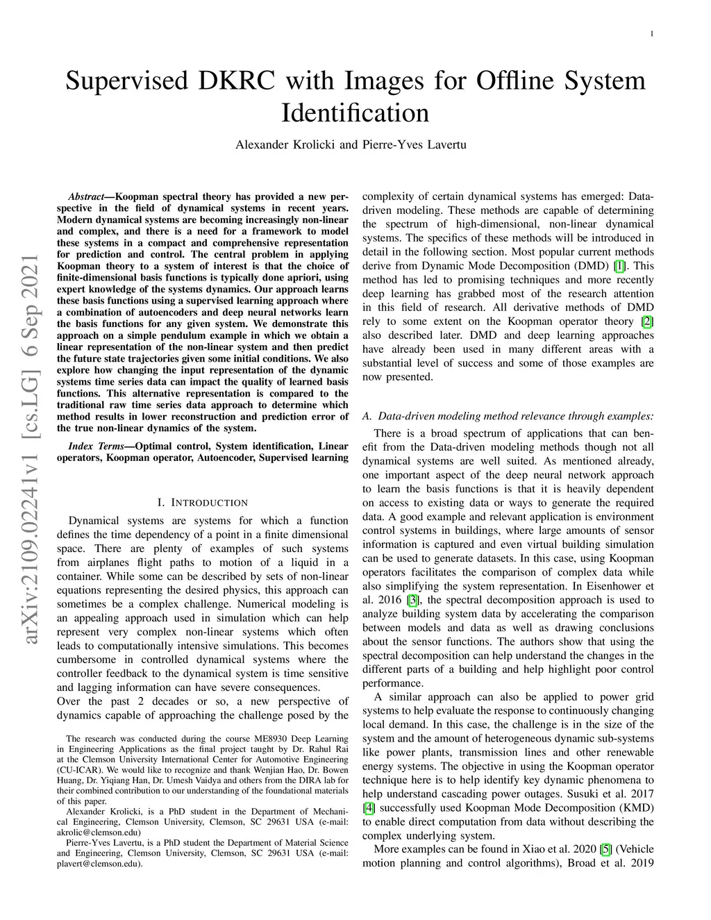 Supervised DKRC with Images for Offline System Identification