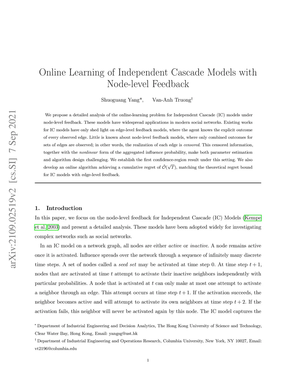 Online Learning of Independent Cascade Models with Node-level Feedback