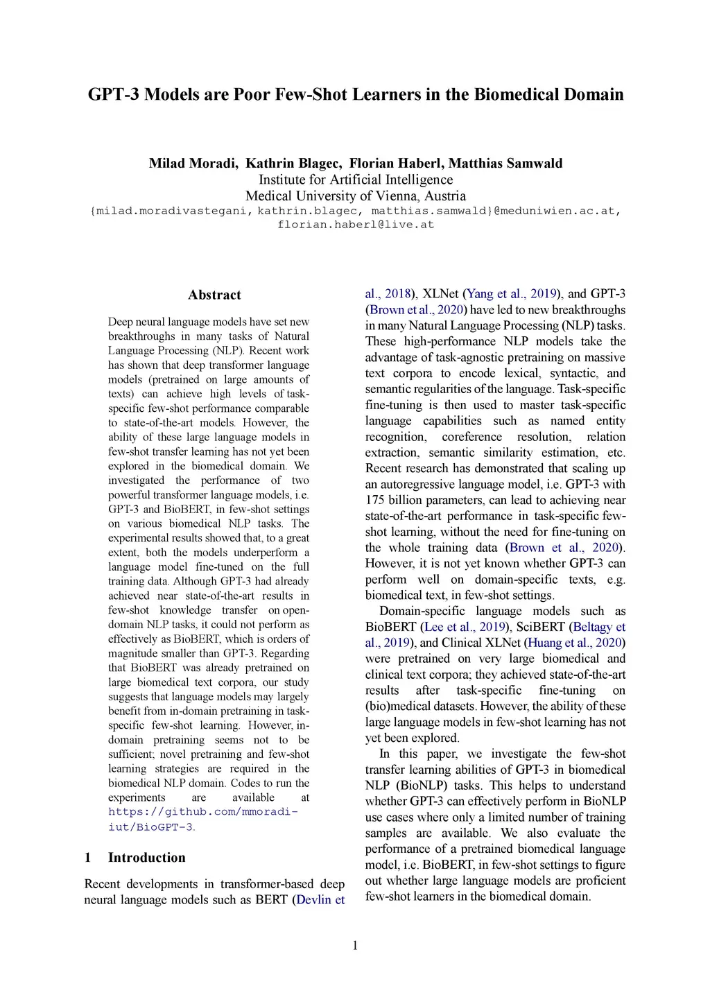 GPT-3 Models are Poor Few-Shot Learners in the Biomedical Domain
