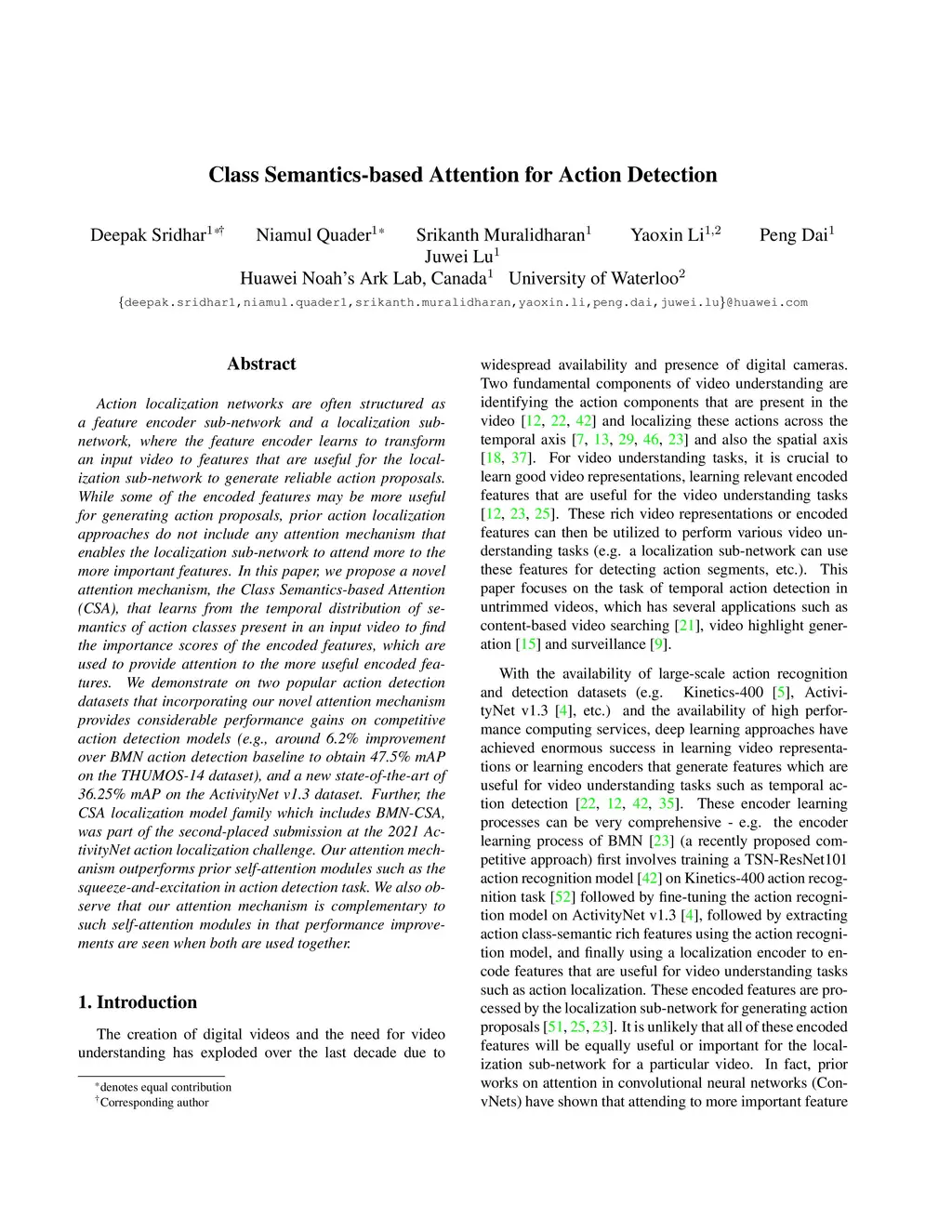 Class Semantics-based Attention for Action Detection