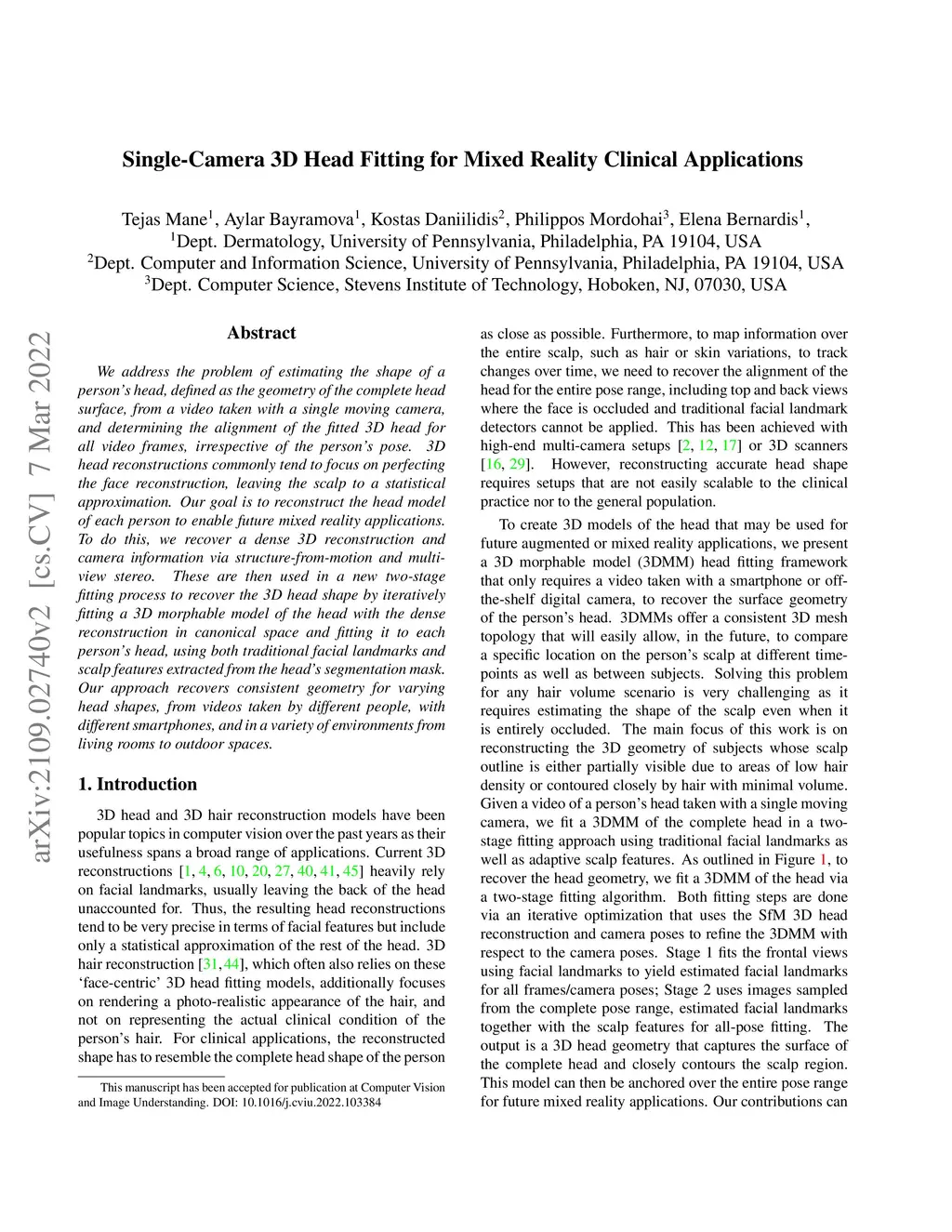 Single-Camera 3D Head Fitting for Mixed Reality Clinical Applications
