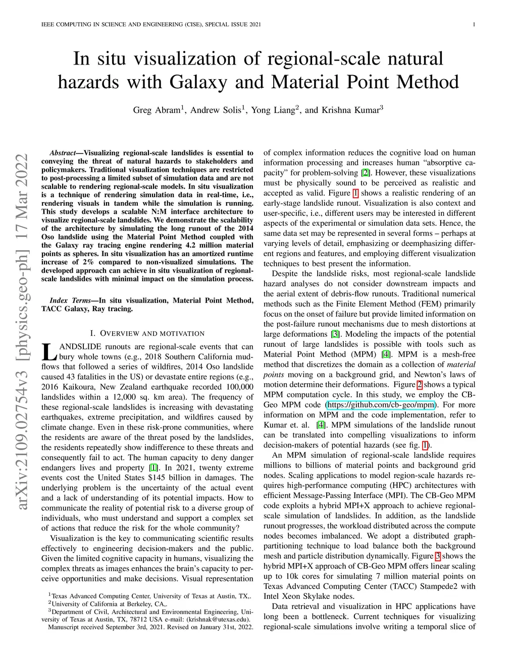 In situ visualization of regional-scale natural hazards with Galaxy and