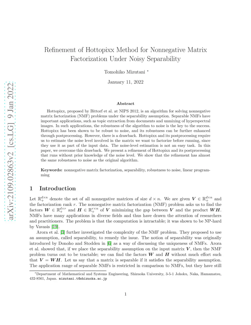 Hottopixx, proposed by Bittorf et al. at NIPS 2012, is an algorithm for solving nonnegative matrix factorization (NMF) problems under the separability assumption. Separable NMFs have important applications, such as topic extraction from documents and unmixing of hyperspectral images. In such applications, the robustness of the algorithm to noise is the key to the success. Hottopixx has been shown to be robust to noise, and its robustness can be further enhanced through postprocessing. However, there is a drawback. Hottopixx and its postprocessing require us to estimate the noise level involved in the matrix we want to factorize before running, since they use it as part of the input data. The noise-level estimation is not an easy task. In this paper, we overcome this drawback. We present a refinement of Hottopixx and its postprocessing that runs without prior knowledge of the noise level. We show that the refinement has almost the same robustness to noise as the original algorithm.